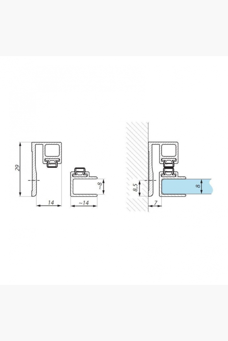 Magnetinis profilis SHMW-SET PC skirtas stiklinėms dušo kabinoms, kur durų stiklas jungiasi su siena 90° kampu. Integruota magnetinė tarpinė užtikrina tvirtą ir sandarų durų užsidarymą, todėl vanduo nepatenka už dušo kabinos ribų. Tai patikimas sprendimas tiek naujai montuojamoms dušo kabinoms, tiek renovuojant ar atnaujinant esamas stiklo konstrukcijas.