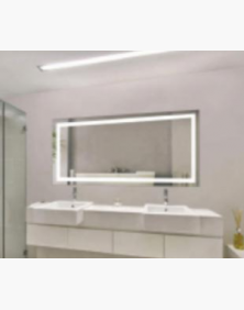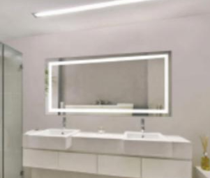 Modernus LED veidrodis be rėmo su 1 Touch jungikliu ir 3 spalvų apšvietimu. Šviesa matoma tik iš priekio, frosted finish LED zonoje. 5 mm copper-free stiklas, atsparus drėgmei.