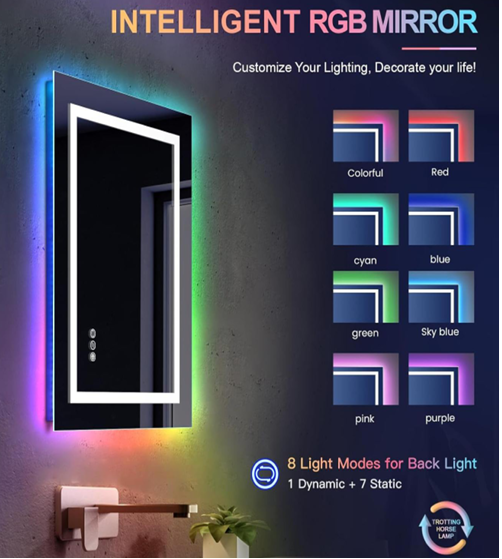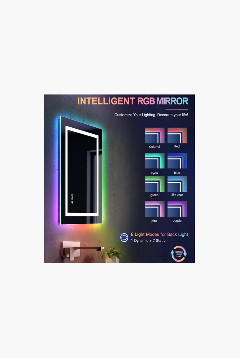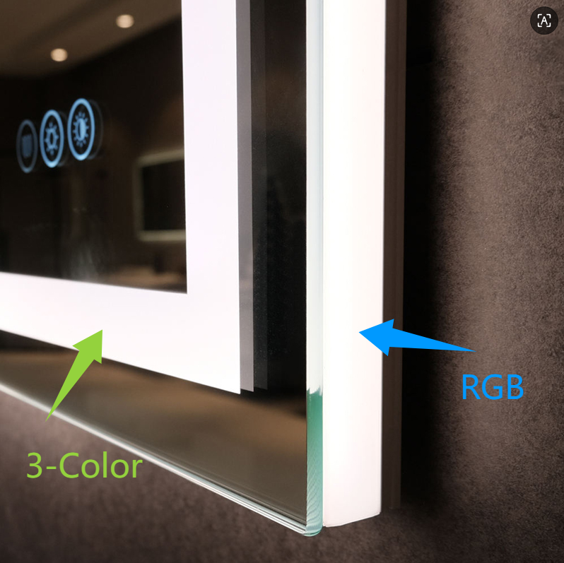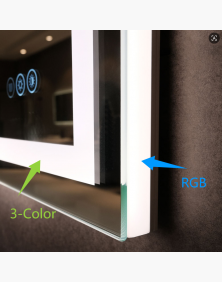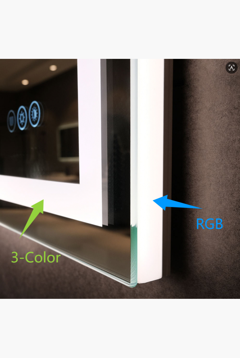 Šis LED veidrodis be rėmo – tai pažangus, modernus sprendimas vonios kambariui ar interjerui. Integruotas 3 spalvų apšvietimas priekyje suteikia komfortą, o RGB šviesa šonuose prideda dekoratyvinio efekto.